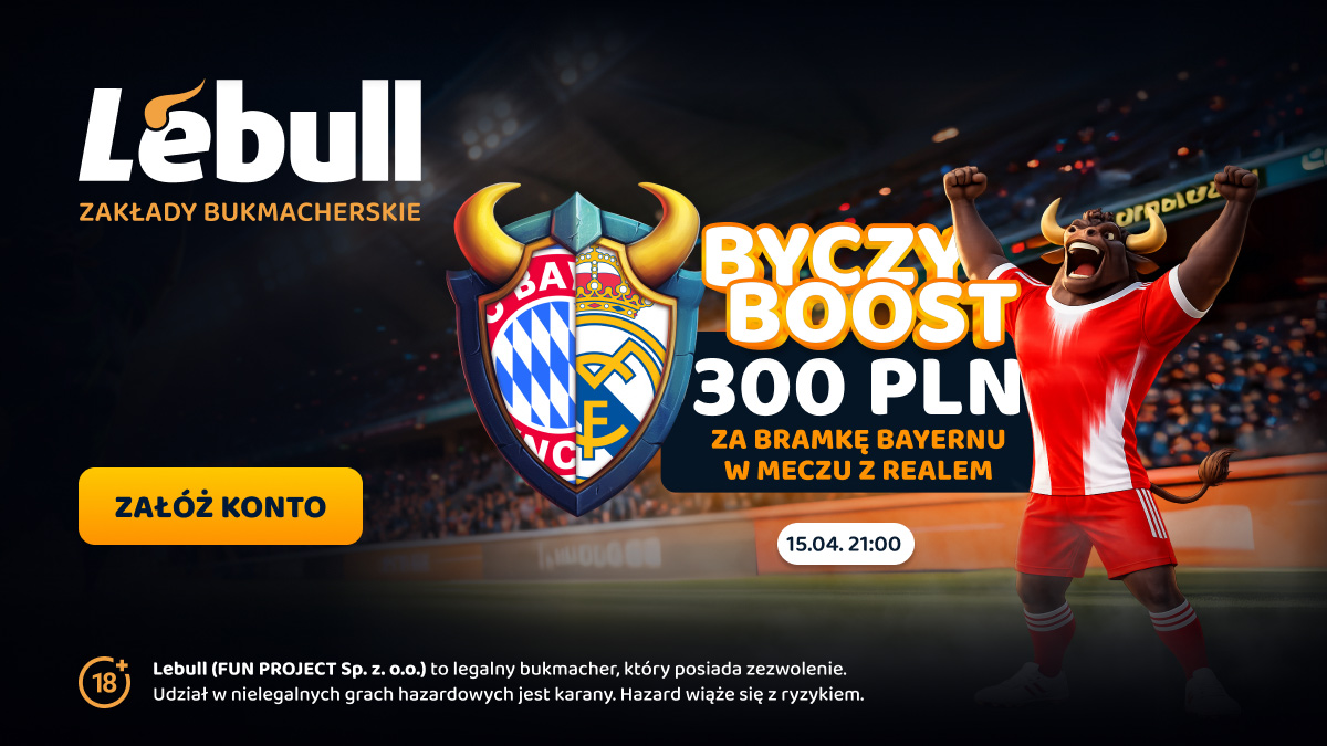 Artykuł sponsorowany. Oferta skierowana do osób pełnoletnich. Lebull to legalny bukmacher, który posiada zezwolenie. Udział w nielegalnych grach hazardowych jest karany. Hazard wiąże się z ryzykiem.